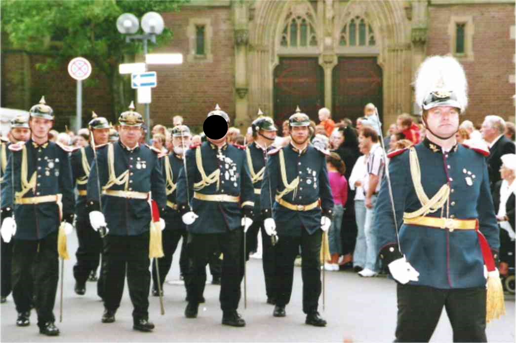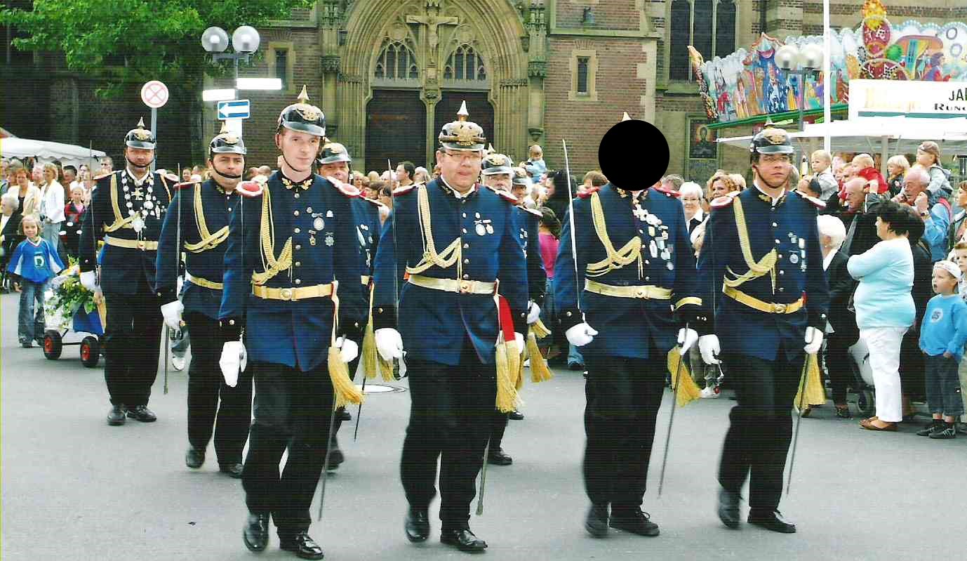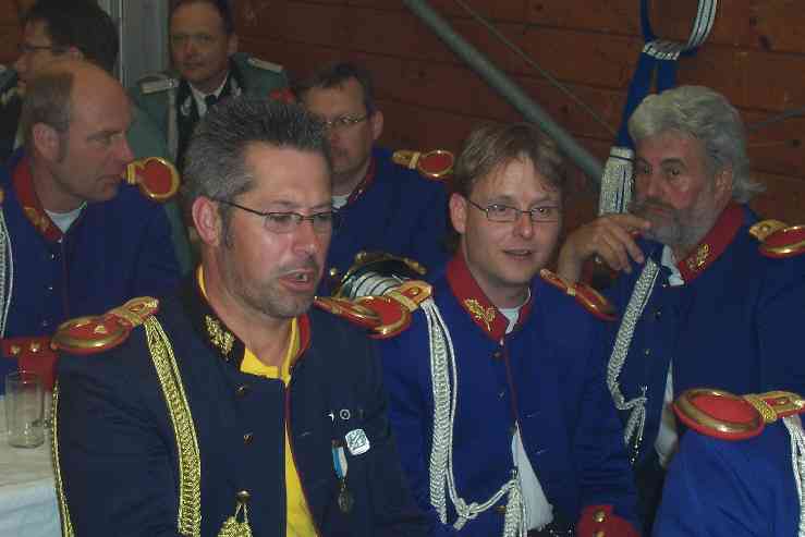 von der Stange und unser Spieß Uwe Grams empfing von seinem Vorgänger, Hans-Günther Ibach das Königssilber. Vor dem amtierenden König hatten bereits 4 x Jörg Friedrich, 2 x Stefan Bohnen, Rainer Pricken, Guido Ibach u. Holger Marszewski und je 1 x Horst van Tessel und H.G. Ibach die Ehre, das Preußensilber zu tragen. Mehr unter Gruppenvogel & Königskette .